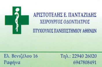 customer tabsΕπικοινωνίαΕμφυτεύματαΨηφιακές ακτινογραφίεςΑισθητική οδοντιατρικήΛεύκανσηΔέχεται καθημερινά 10:00 - 13:00 & 17:00 - 21:00,όλα τα απογεύματα.ΕμφυτευματολόγοιΑισθητική ΟδοντιατρικήΥγείαΕλεθέριου Βενιζέλου 16, Ραφήνα, Αττική 2294026020 6947808491apanta1978@yahoo.com Το προτείνω (έχει προταθεί 0 φορές) ΦωτογραφίεςFacebook LikeShare on FacebookTweet Widget